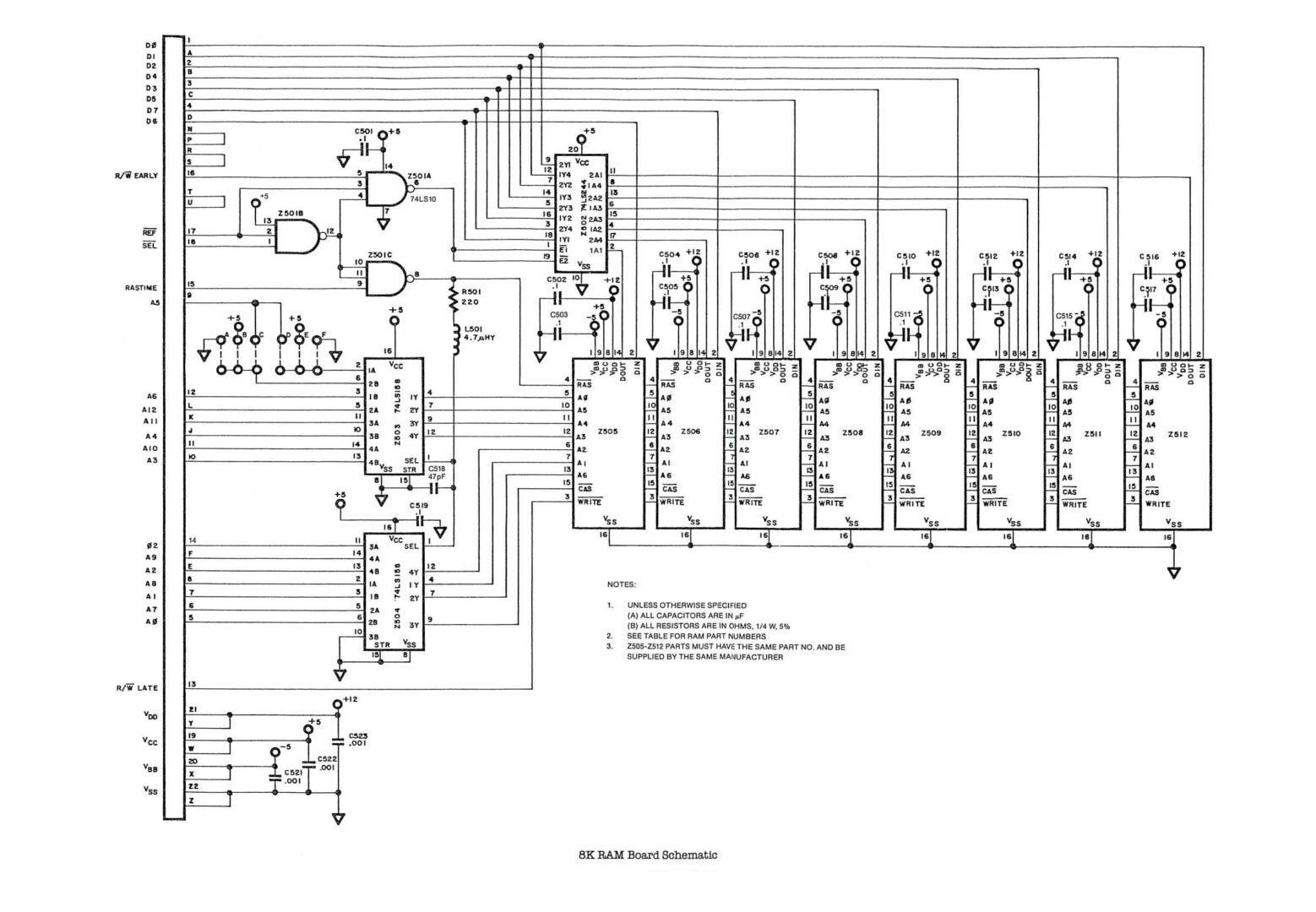 - RAM Board: esta placa también se encuentra conectada a la Motherboard Console, y en ella encuentran los chips de RAM: 8KB o 16KB.