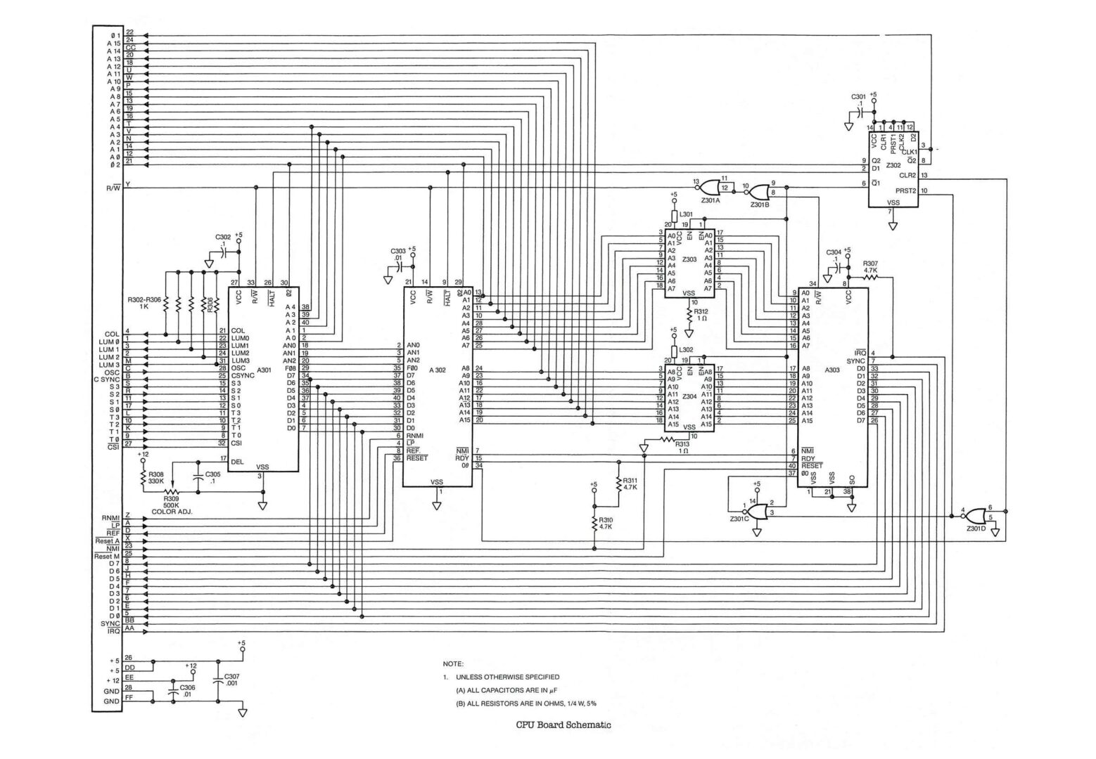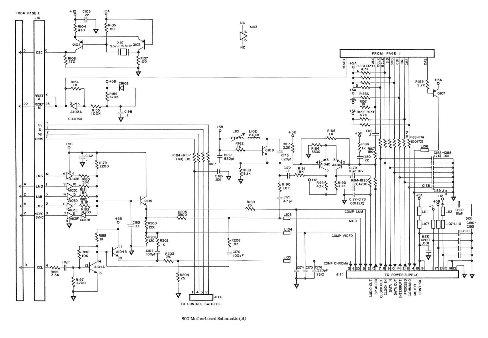 - CPU Board: en esta placa se ubica el procesador MOS 6502, los integrados CTIA (o el GTIA en las unidades más modernas), ANTIC y la circuitería auxiliar.