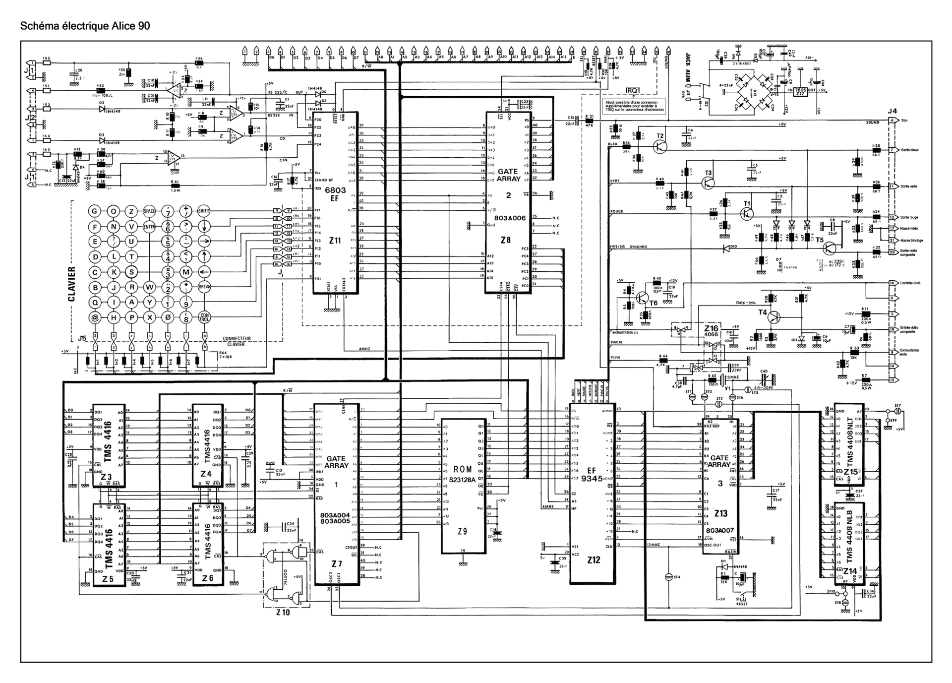 Al igual que el Alice 32, el chip gráfico es el EF9345 que le permite realizar incrustaciones de video sin hardware adicional. Además es compatible con el MC6847, y es capaz de mostrar 8 colores, 128 caracteres alfanuméricos y 128 caracteres semi-gráficos. Posee un modo semigráfico, dos modos de texto y 8 modos gráficos. El EF9345 es capaz de utilizar hasta 16KB de VRAM, aunque en el diseños del Alice 32 y del Alice 90, sólo se usan 8KB.